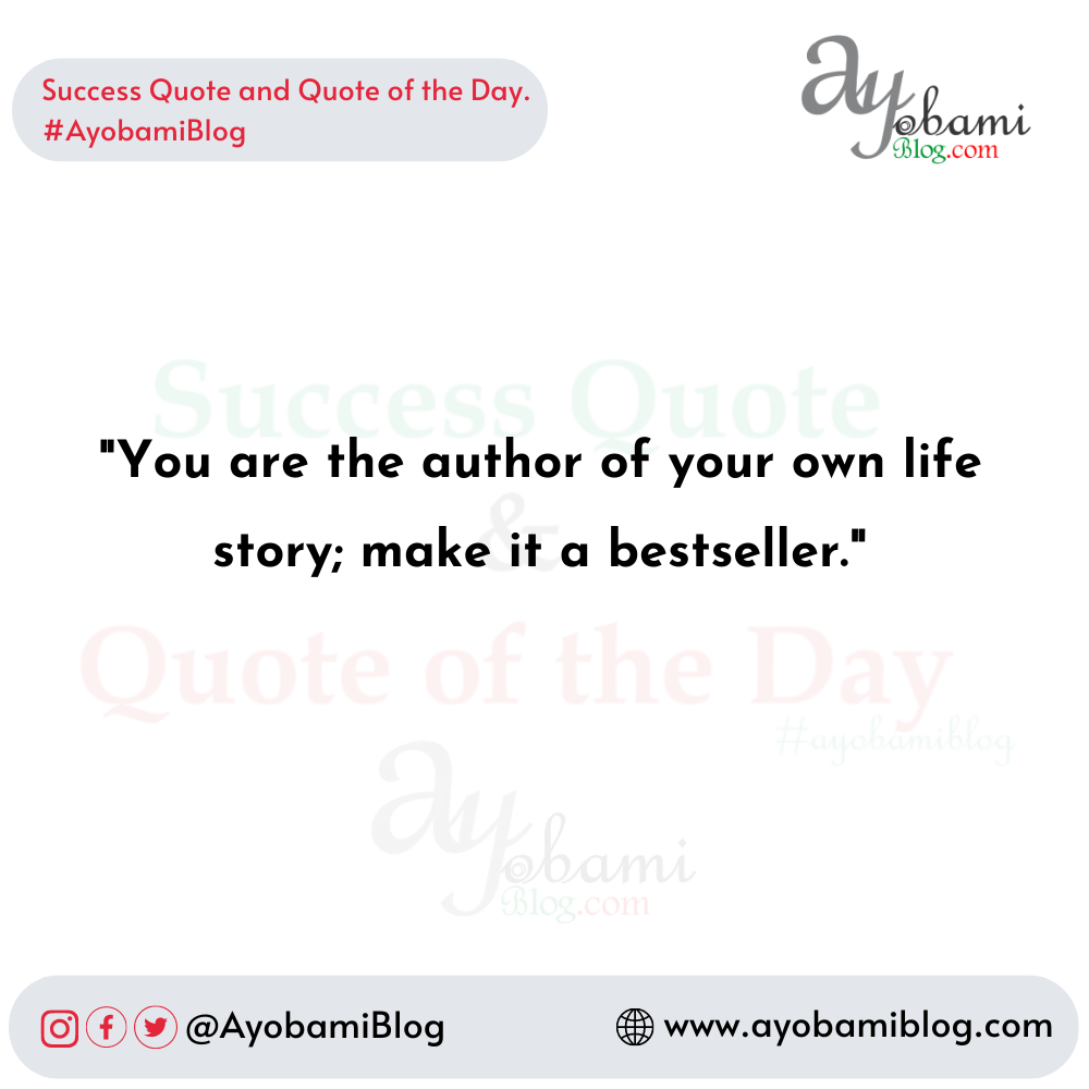 Success Quote & Quote of the Day. Success Quote and Quote of the Day By Esther - November 27, 2023 Monday Success Quote and Quote of the Day by AyobamiBlog #AyobamiBlog Share this: Share on WhatsApp (Opens in new window) WhatsApp Share on X (Opens in new window) X Share on Facebook (Opens in new window) Facebook Share on LinkedIn (Opens in new window) LinkedIn Share on Telegram (Opens in new window) Telegram Related Discover more from Ayobami Blog Subscribe to get the latest posts sent to your email. In Post: AyobamiBlog Data Shop Type your email… Subscribe Post Bt: AyobamiBlog Data Shop